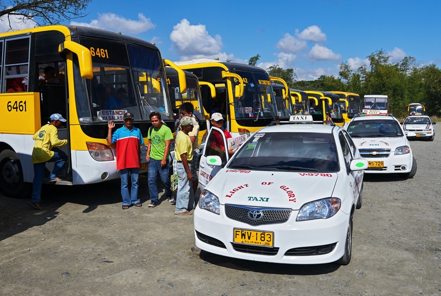 主な交通手段は、ジプニー(乗合バス)やトライシクル(バイクにサイドカーをつけた乗り物)、タクシーが挙げられます。