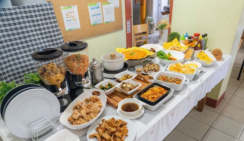 フィリピン料理、中華、韓国料理、洋食など様々なメニューをビュッフェスタイルで提供しています。平日は3食、週末はブランチのみの提供です。