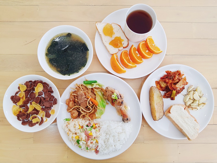 在籍している生徒は韓国・日本・台湾・ベトナム・サウジアラビアなどで多国籍の生徒に考慮しバラエティに富んだ食事を提供しています。