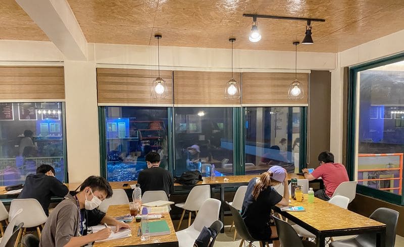 月〜木曜日は8時から18時まで(金曜のみ17時)みっちりと勉強ができる環境です。マンツーマンは1日4〜5時間受講することができ、自分自身が勉強したいことを集中的に学ぶことができます。グループクラスは最大4名の少人数でアットホームな中で発言もしやすい環境です。また、さまざまな科目やテーマが準備されているので、目的に合わせて勉強ができます。