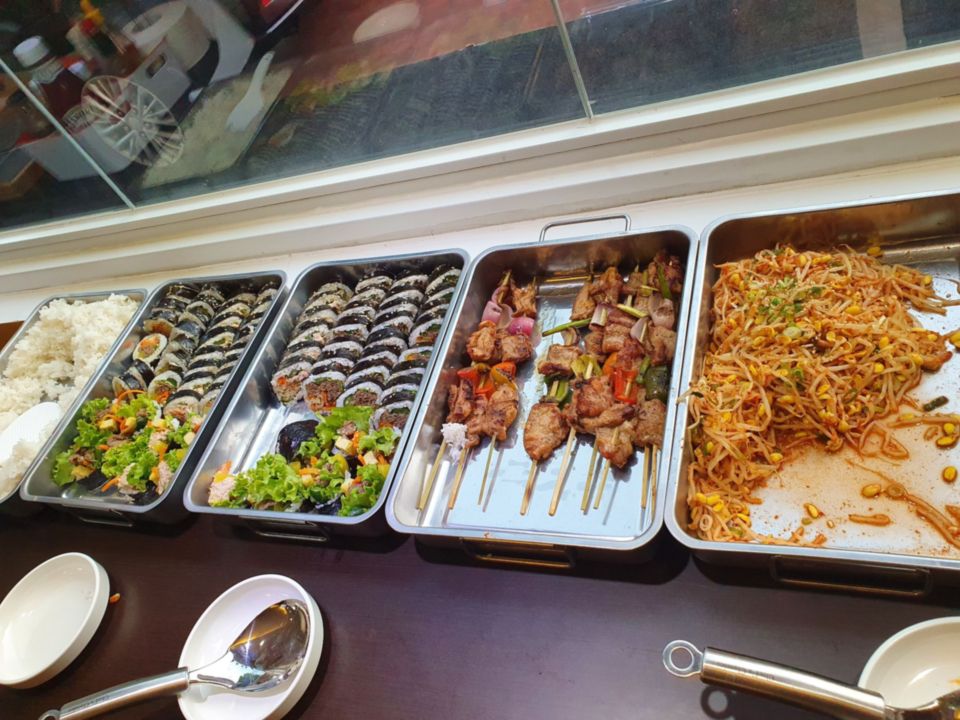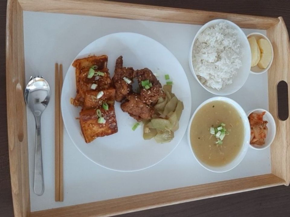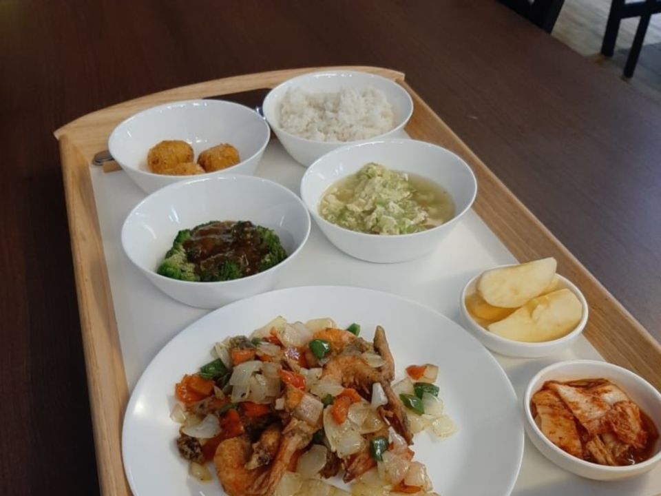 平日は1日3食、休日はブランチと夕食の2食が提供されます。学生の国籍比率によってメニューは変わりますが、メインメニュー1〜2品、サイドメニュー4〜6品、フルーツ、スープとバランスの良い食事を摂ることが可能です。
