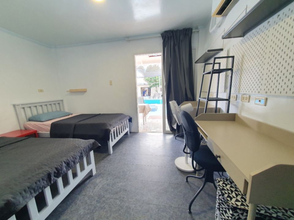 寮はキャンパスから徒歩2分ほどの場所にあり、無料利用のできるプールも付いています。各部屋に、冷蔵庫、エアコン、扇風機、タンス、 机、電気スタンド、棚、下駄箱、トイレ(温水シャ ワー)を完備しております。