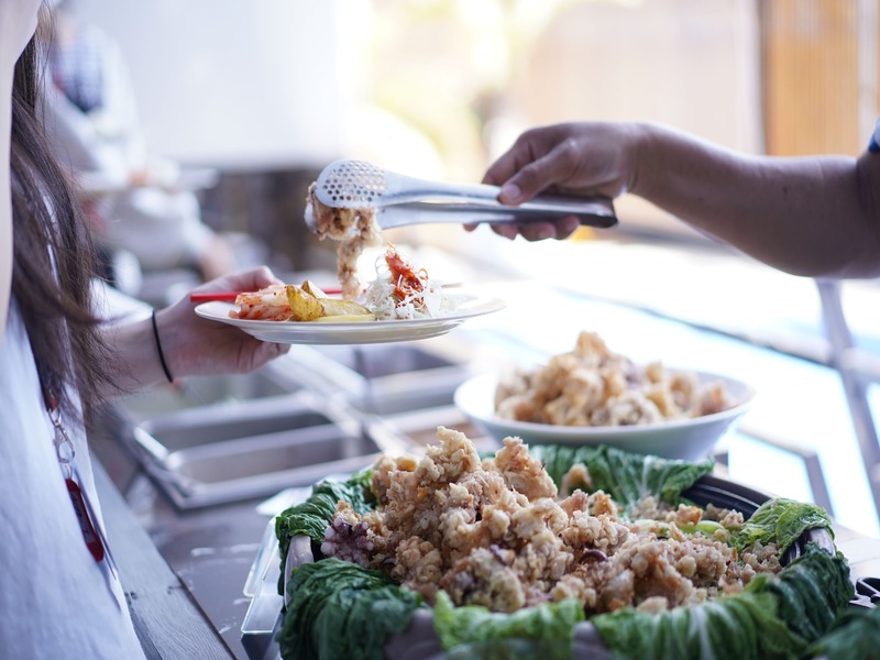当校では学内でブッフェスタイルで学食を提供しています。和食を始め、中華、フィリピン料理、ベトナム料理、タイ料理、パスタ、ラーメン、うどんなど様々な国籍のバラエティ豊富な食事を提供しています。